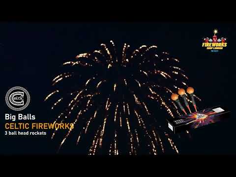 A pack of 3 brand new ball head rockets from Celtic. Each with a unique effect. Super Glittering Brocade with a stunning hang time, Red Peony with Sun Ring and Crackling Spider Pistil a real professional shell effect and White Strobe Peony with Chrysathemum Pistil. In an effort to reduce waste and plastic packaging, these rockets come with a flip stick to reduce shipping and storage and are provided in a box to eliminate the plastic sleeve. A nice touch.